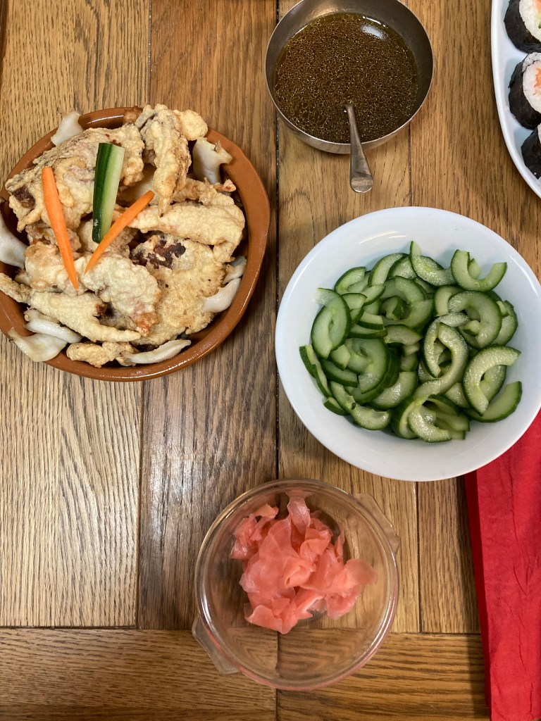It felt like an Instagram moment, right here in our dining kitchen, when our cooperating chefs laid out sushi and prawns, avocado slices interspersed with spring onions over black cod and raw abalone, soft-shell crabs fried in crunchy tempura batter.