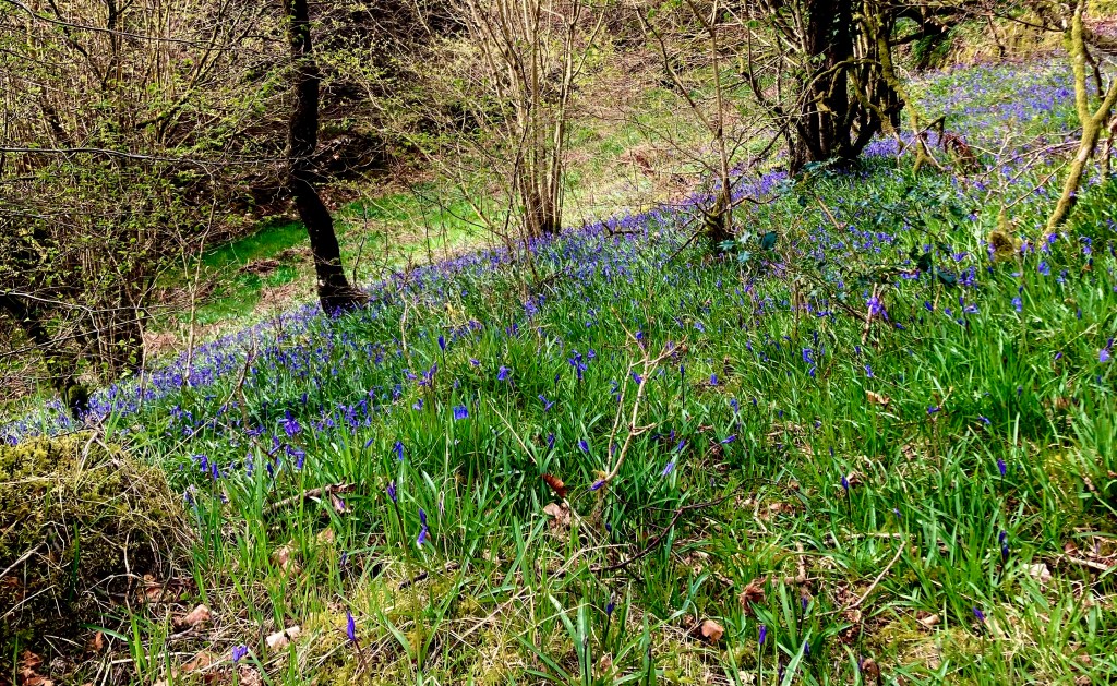 Lovely sloping hillsides covered in blooming bluebells greeted us. Perhaps they were not quite at their peak, but it was a near thing. After a few attempts at capturing the display, we ambled on. The bird song was intense, and I was supposed to record some for later investigation on a Cheep app, but I was more in a visual mood. Okay then, my beloved riposted, let’s identify each of these tiny white flowers, with your iPlant Picture-This app.