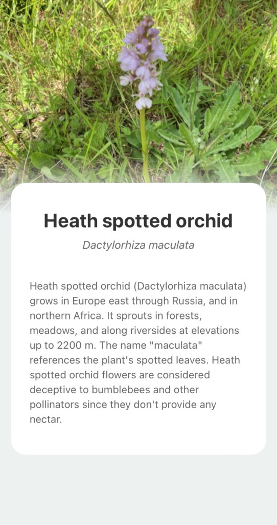 You begin to see that some things stay the same. An appreciation for wild flowers, for example: having been primed by the broad-leaved marsh orchid at the bottom of our Northumberland track, I was ready to pounce on this heath orchid on our village walk. That sensibility is carrying on through into a changed lifestyle. And habits of activity: sorting out the groceries; cleaning the place; dealing with the washing-up. The same things but different, perhaps. Just different enough to clock that we’re undergoing a reset, that we’re doing things differently to what we did in our previous home.