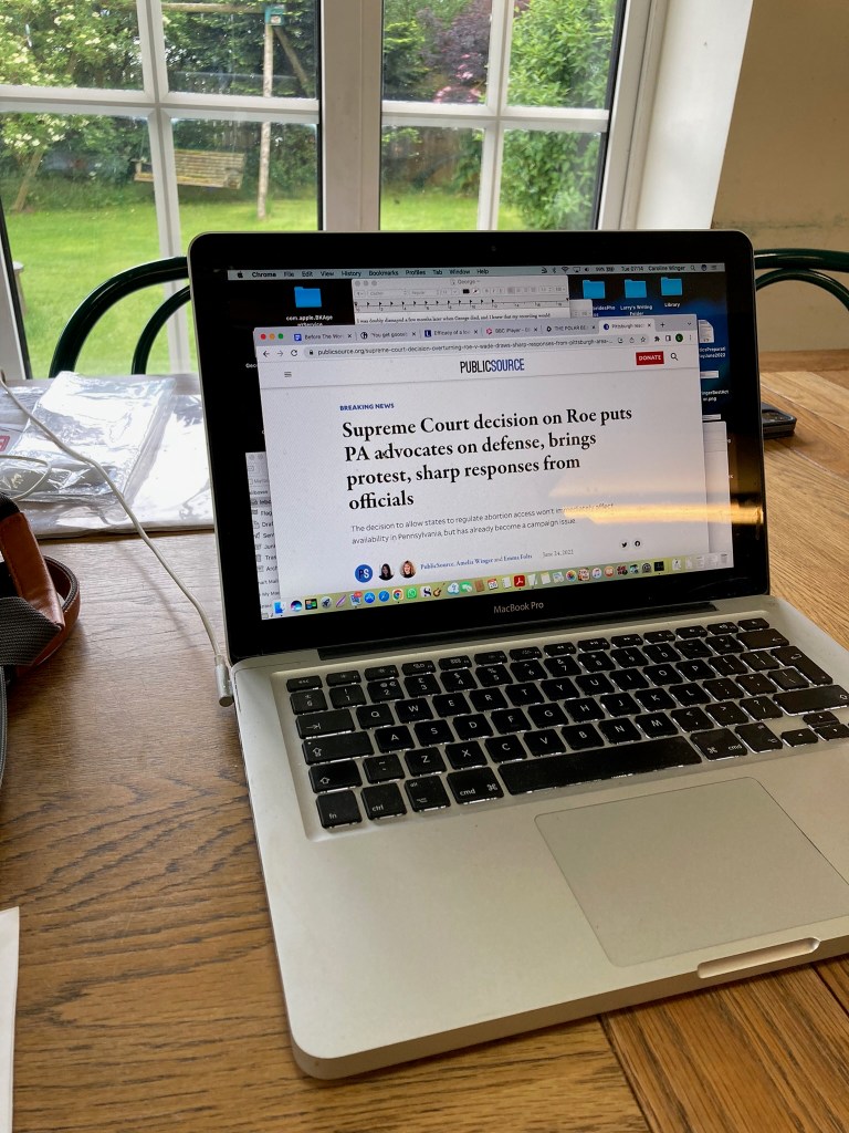 Meanwhile, it was also a pleasure to hear about, find and read our niece’s first piece in her new job at Public Source, Pittsburgh, where she reports on her work exploring factual data in the health sphere. In this instance, the facts look to be quotations from interested parties themselves, which are taken from a variety of feeds: Zoom press conferences; Twitter; press releases. All wrapped up in a piece describing some of the political fallout from the Supreme Court’s up-ending of the past fifty years of women’s health care. It appears to be a fascinating exercise in straight reporting, with the bare facts presented, allowing the reader to make up their own mind. Reading the piece, I’m struck by how much my own opinions are formed by those of columnists, as opposed to a personal assessment of the received data of factual reports.