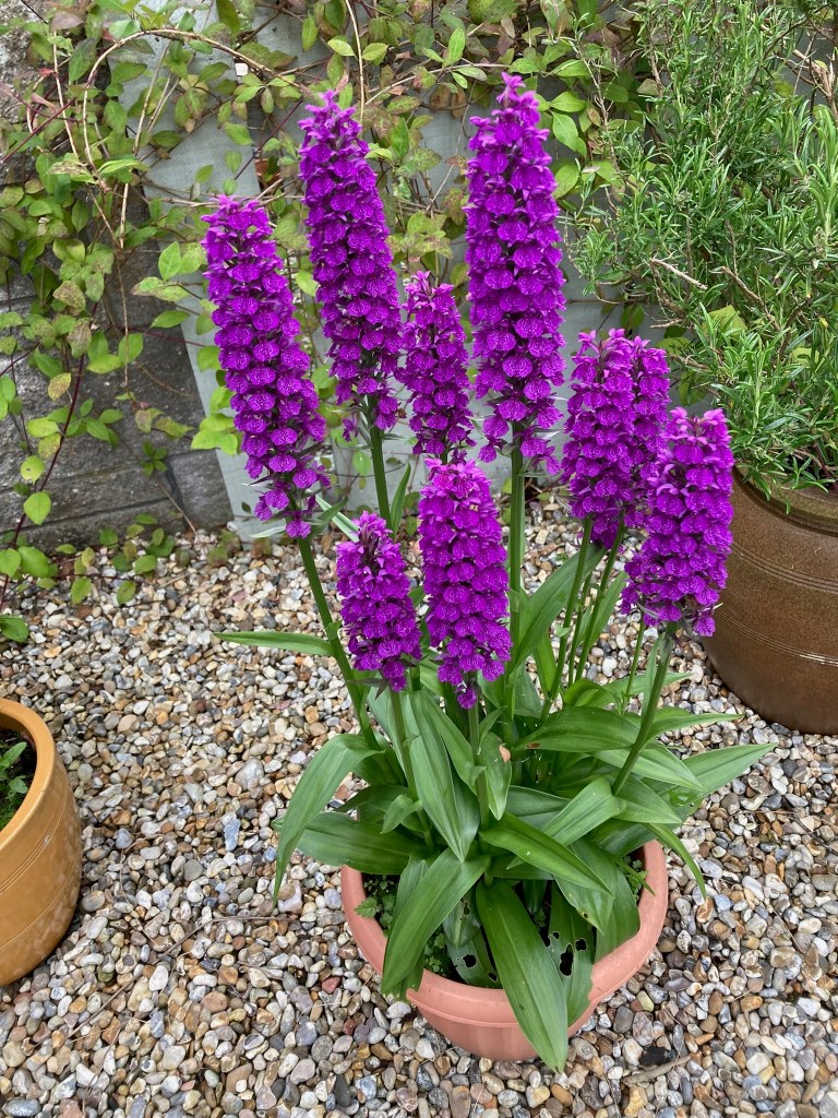 It’s no longer spring, and the garden is really a series of plants in pots on the gravel and deck, here at Spring Cottage, but the blossoms greeting us on our arrival were fulsome and real.