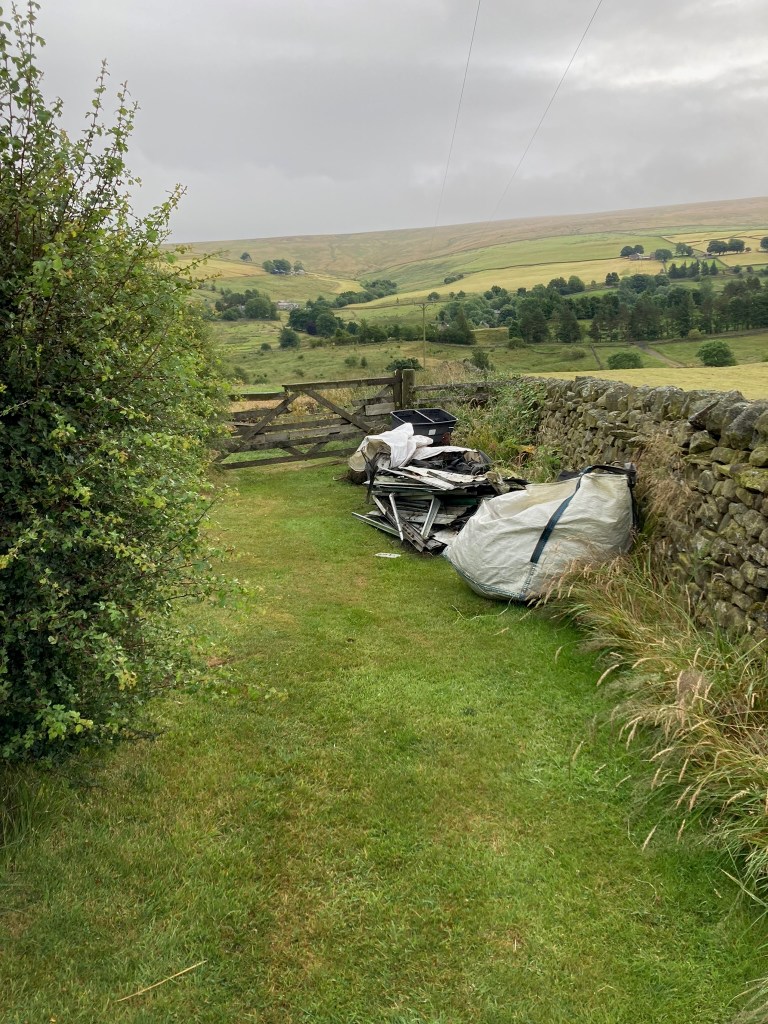 It was a hard job, but somebody had to do it! Over the years I’ve been accumulating defunct items in a corner of the field. The weeds have overgrown the small heap so it was as if there was nothing there. But I knew the day of reckoning would arrive, and yesterday morning it did. I set to with purpose, to clear the corner of the junk.