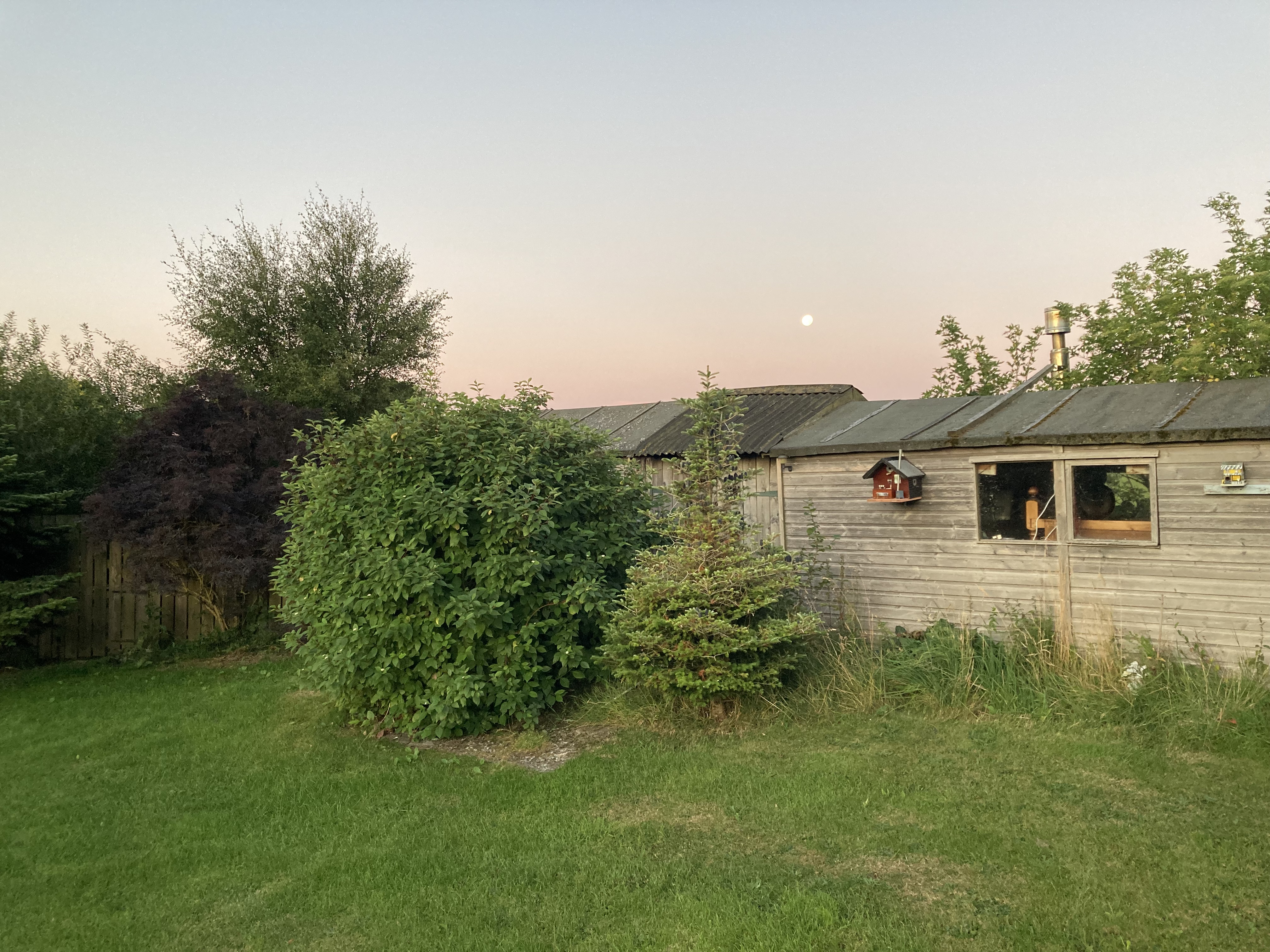 Outside, it was soft, so soft, in the cool glow of morning twilight. The full moon (or very nearly full) glowed in the west-south-west above our old sheds, and it would be an hour at least before the sun rose above the horizon. It was so quiet, except for the punctuation of our cockerels’ greetings.