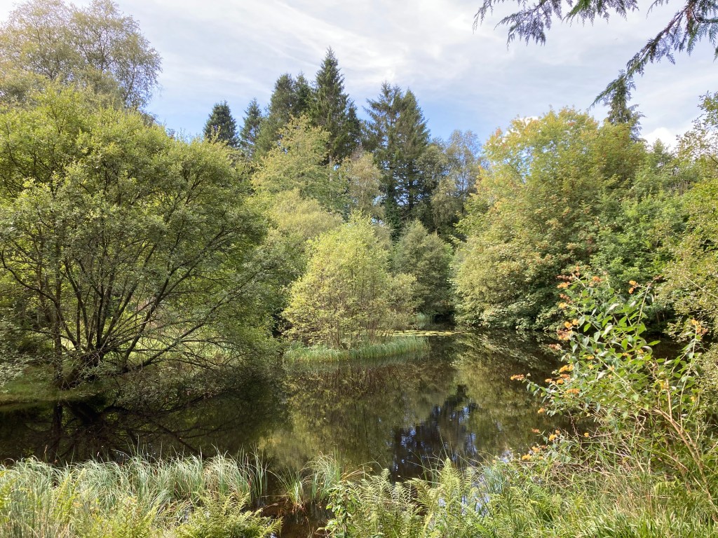 Twice we heard a splash in the still water; whether a rising fish or a diving frog we couldn’t say. We’d walked through the wood and onward, specifically to find this little loch. Fortunately, though we’d had ample directions earlier, we met, twice, a kind friend who pointed out the correct path.