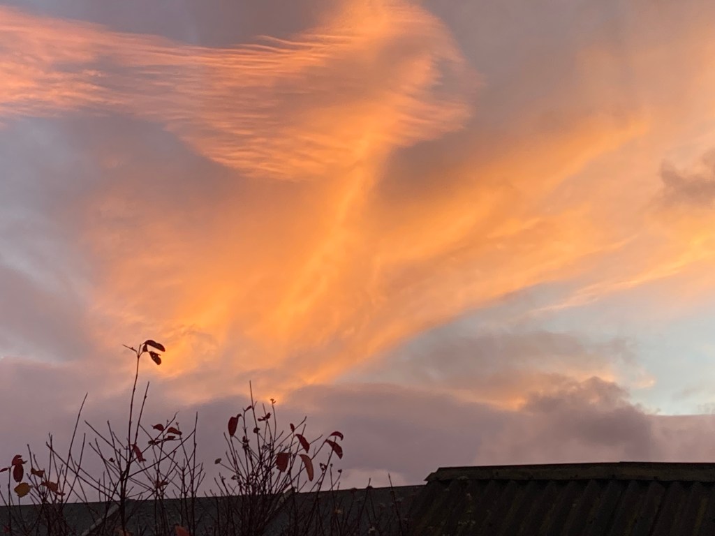 The poets in a twitter feed I’m bemused with seem to exult in every new nugget of word play, every conflation that somehow speaks to the reader. Not so often to me, if I’m honest, but then I’m getting old and older. More and more often, it’s enough to say, wow, isn’t that sky amazing! Perhaps the subtlety of youth is passing me by, and I’m content with the broad strokes that illumine the day.