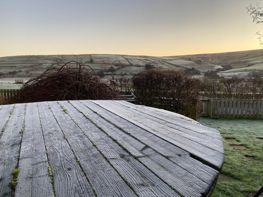 Everything outside today, high in these North Pennine fellsides, is still. The frost, the real first we’ve seen this season, is a harbinger of harsher weather ahead, but just now it’s rather exquisite.