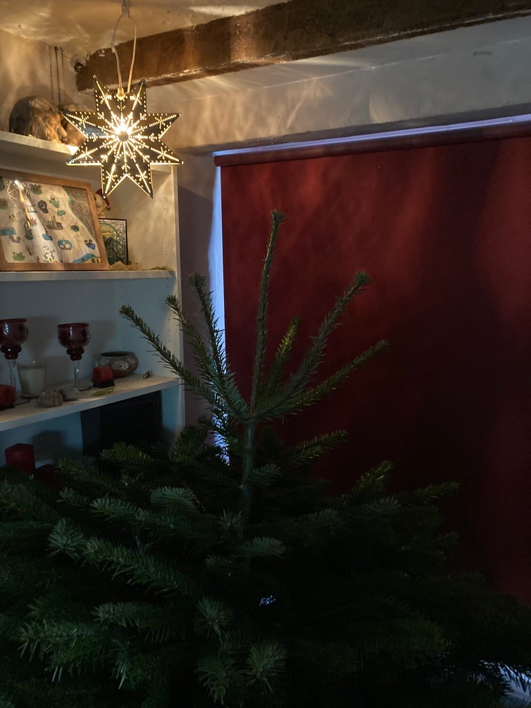 The tree is ready for dressing . . . when the time comes, we’ll move it from the jammed-in corner and centre it a bit. The star will point the way to Bethlehem, and we’ll figure out a proper angel, or perhaps a stand-in, for the peak. The stories will be told and re-told: religious, secular, family, friends, animals, food. The list of stories is pretty much endless, and as life goes on we keep adding to it. But for now, we’re in Christmas present.