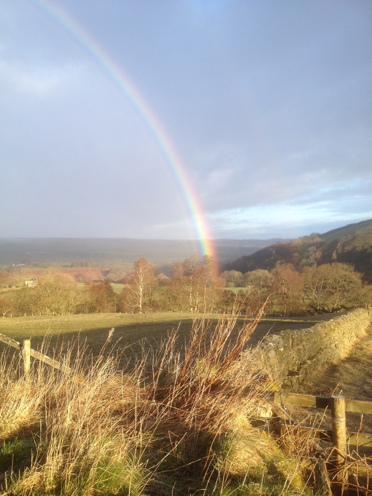 Critical deadlocks mitigating against the timely sale of our beloved home appear reconciled. Tomorrow’s surgical list and the availability of a hospital bed both look more promising. Top-up shopping helps the cook’s mind to rest easier, and the evanescent rainbow in Sinderhope, so close it seemed you could reach out and touch it, shimmered with refracted light. Heating oil levels look to be okay, and the hot tub is cleaned and filling again as I write. Even the garbage bins at the bottom of the track have been trundled away to the old Sparty Lea bridge for the fortnightly rubbish pickup, and I skipped back to our waiting car with that chore ticked off.