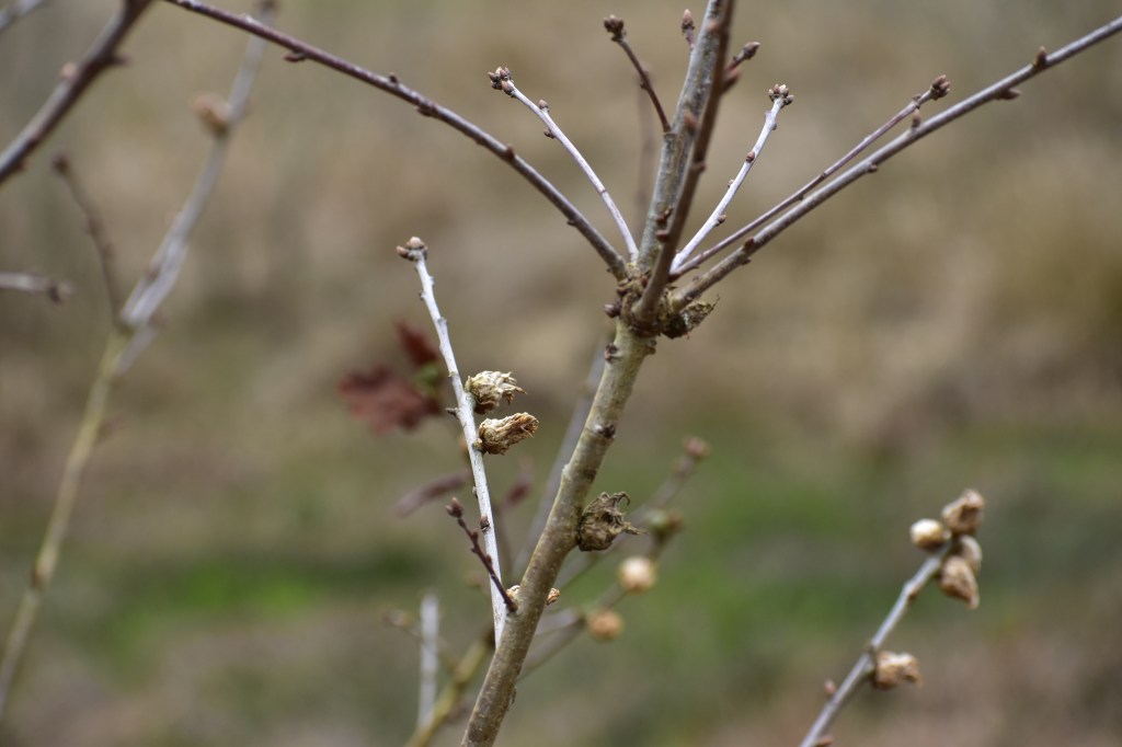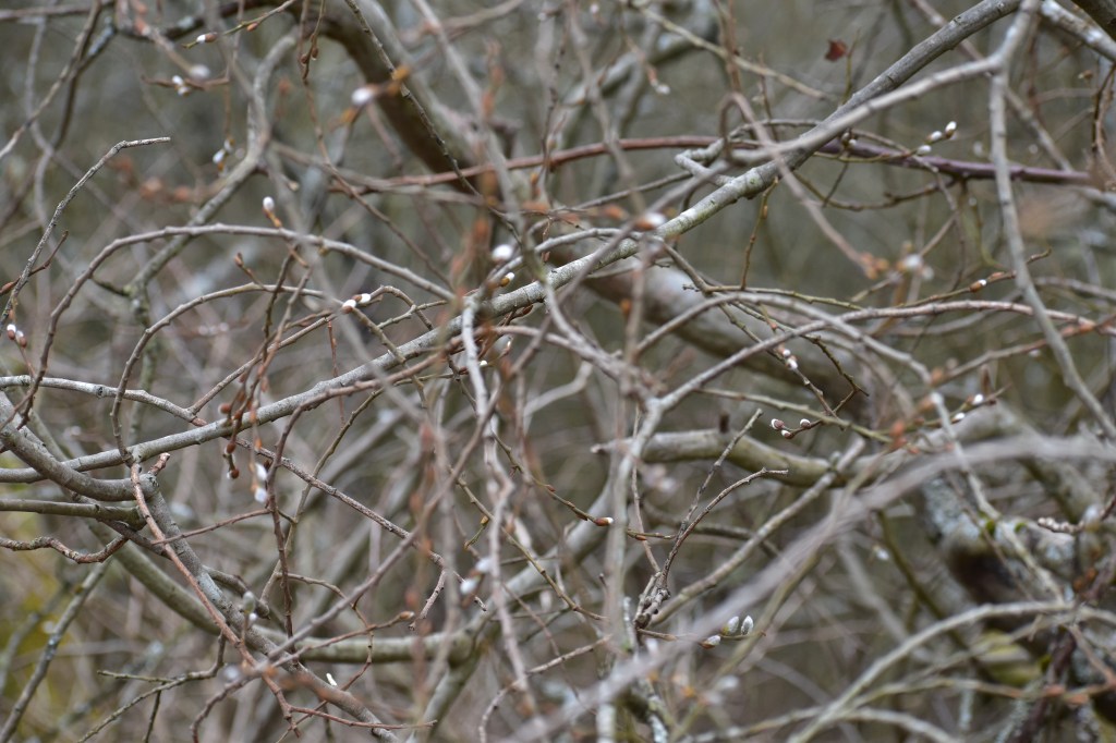 We ambled along the dyke path, through the Ken-Dee marshland, on a reasonably clement afternoon. I’d brought the big camera along so I could get close enough to the various trees lining the circuit, to try to spot some buds of incipient spring.