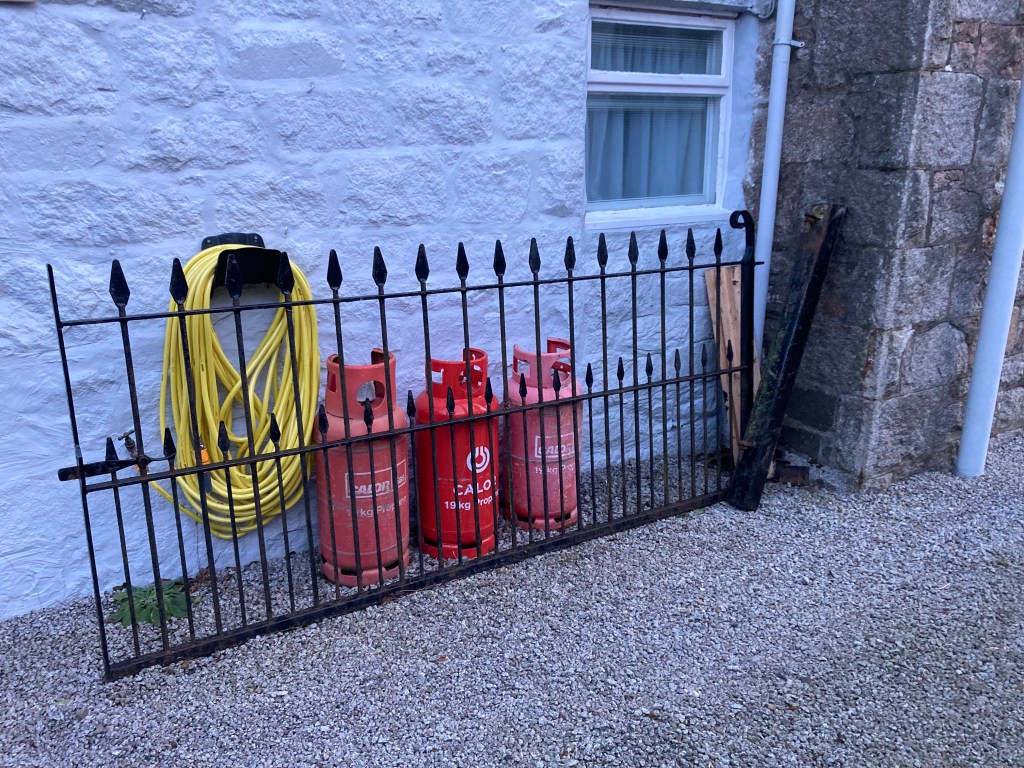 The gate post created a pinch point between its position and that of the soil pipe running down the side of the house, that also extends into the driveway. This pinch point meant that Harry could not be moved straight back, but instead had to be jockeyed about to navigate the small dogleg turning before the driveway straightens out again onto the road. Now that the pinch point has gone, Harry should back straight out. Thank goodness for large angle-grinders and an expeditious cutting of the thick steel post! It turned out, when we assessed the depth of the hollow part remaining, we’d have had to dig down nearly a meter and a half to free the post, around its circlet of concrete, if we hadn’t been able to cut it off underneath the gravel.