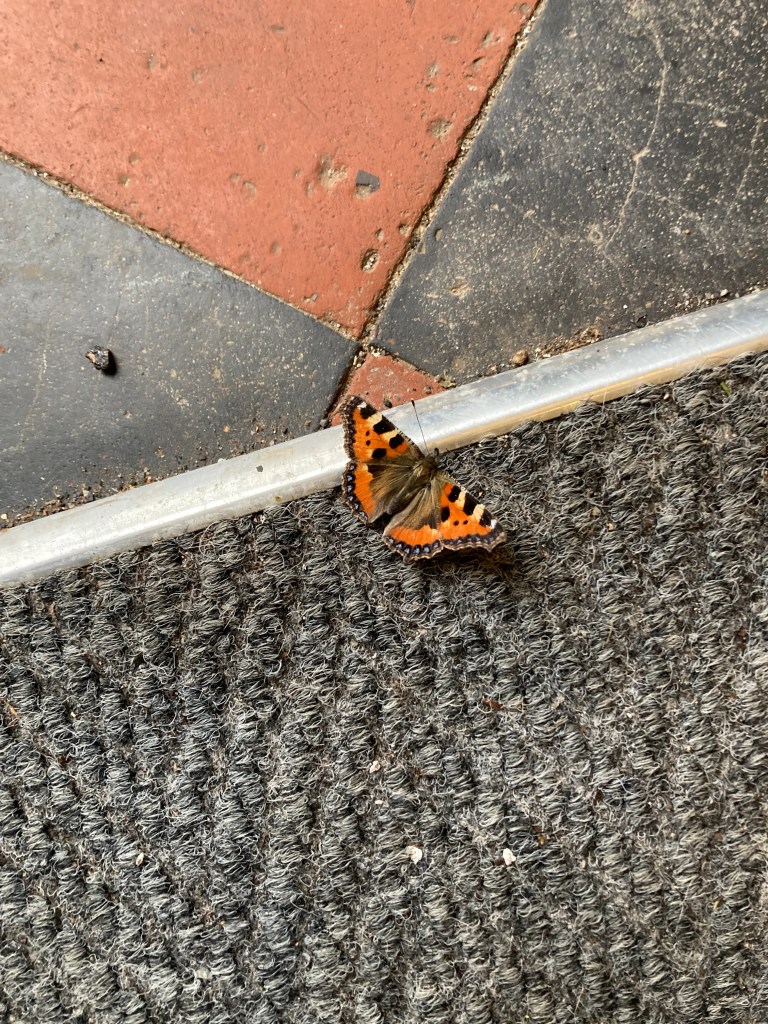 Apparently, small tortoiseshell butterflies flock together to make a huge migration south for the winter months. Isolated individuals are renowned for missing the flight. I wonder how they manage to miss their peers massing into their enormous flock? Left alone, they seem to find the warmest, most sheltered place they can, where they go into a state of suspended animation, emerging only when the shelter’s temperature brings them back to insect consciousness.