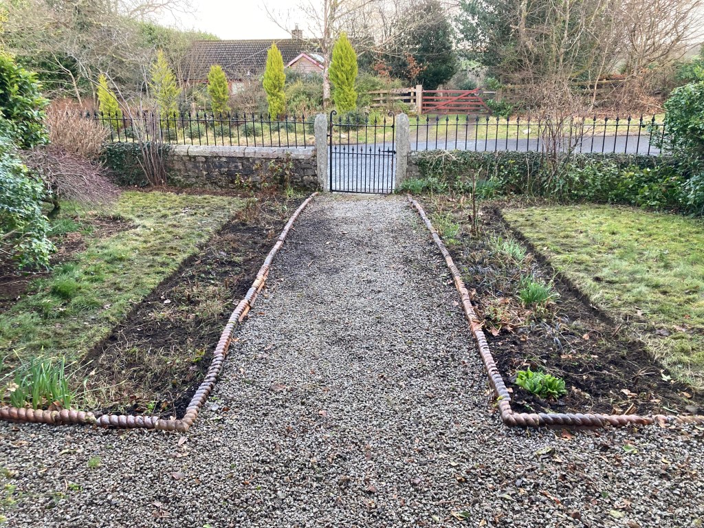 It’s all hustle and bustle, and no matter that I am usually happy ensconced here in my warm eyrie with fingers dancing over the keyboard, yesterday was a good day for getting out and about in the fresh air. My joy, though, was a kind of vicarious pleasure in the good work of someone else, and the delight in thinking that we’ll be more likely to see the shoots when they poke themselves through the chilly soil, now that the beds have been titivated.