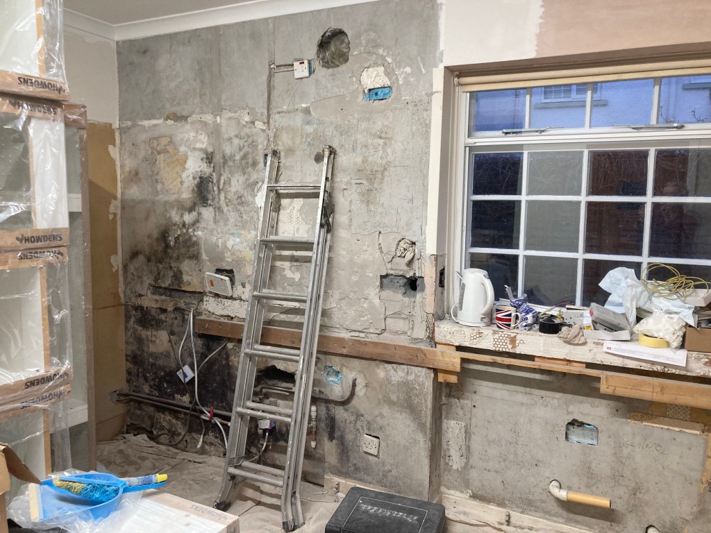 We co-existed with the dust of the major structural project, which involved removing an ancient granite supporting wall (the stones of which are piled in the top left-hand corner of the final image of the gallery above), with some aplomb. Perhaps that was because of the plastic barriers that allowed us to continue to use the old kitchen facilities while the wall came down. So far, so clever.