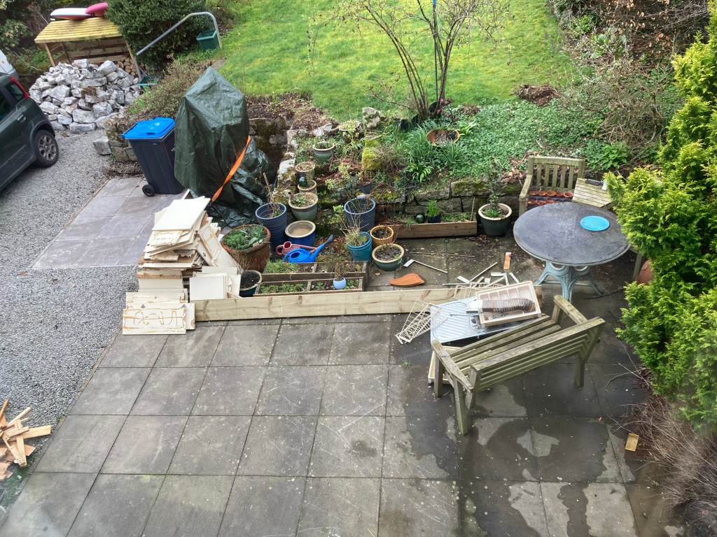 These days, as we’ve been dealing with all the ramifications of major kitchen renovation, we’ve been veering between delight and despair. Sometimes you have to catch the smallest possible unit of hope, in these times, and that’s what I’m trying to do just now as I contemplate the demolished, flattened and neatly stacked set of erstwhile cupboards ready for their trip to the Household Waste Recycling Centre.