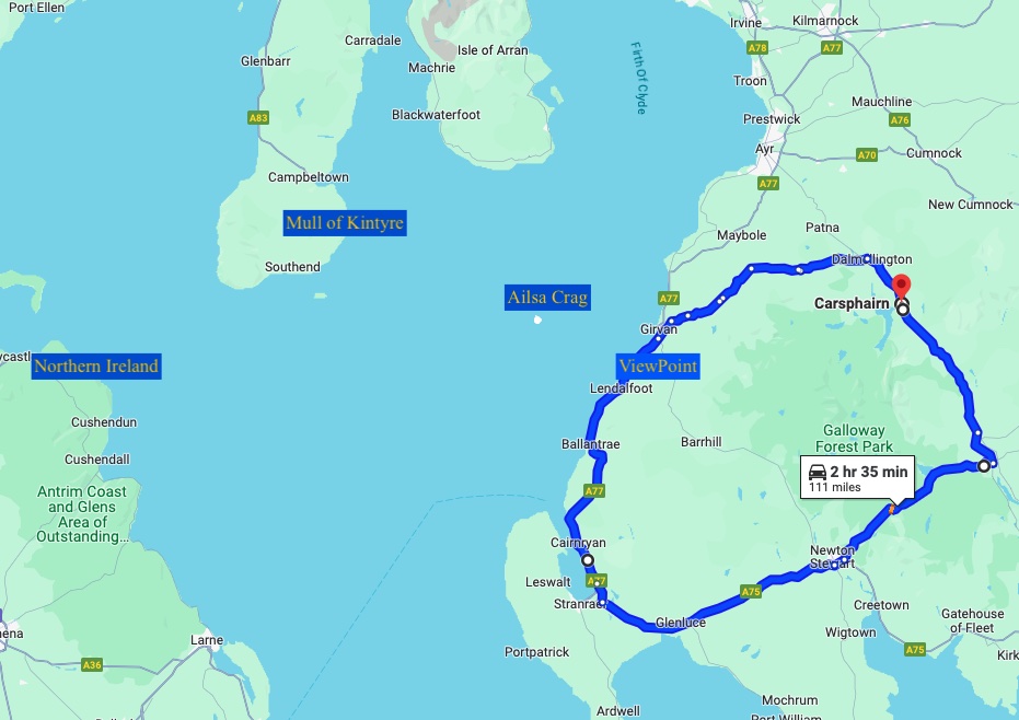 Forever is a long way, but early yesterday afternoon we stood on the western seashore of mainland Scotland and looked across the Irish Sea, beyond the granite island of Ailsa Craig where all good curling stones come from, to see Northern Ireland beyond on its left, and the Mull of Kintyre a bit closer behind on its right. It really is amazing how far you can see on a clear day.