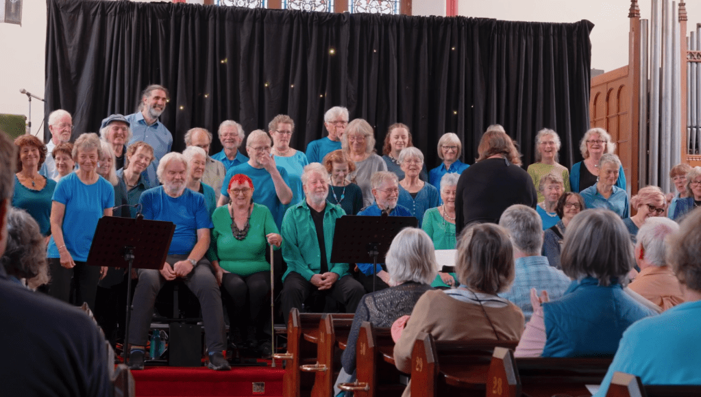 I’ve been involved in serving up several video clips of the SongWave Choir’s concert series over the weekend of the 21st of June, and in the course of putting the page (Singing Up A Storm 2024) together, I found this still that seemed to encapsulate the collective joy of our experience. The applause was nice, of course, but the joy, I think, was the delight we shared in the rendition of the song.