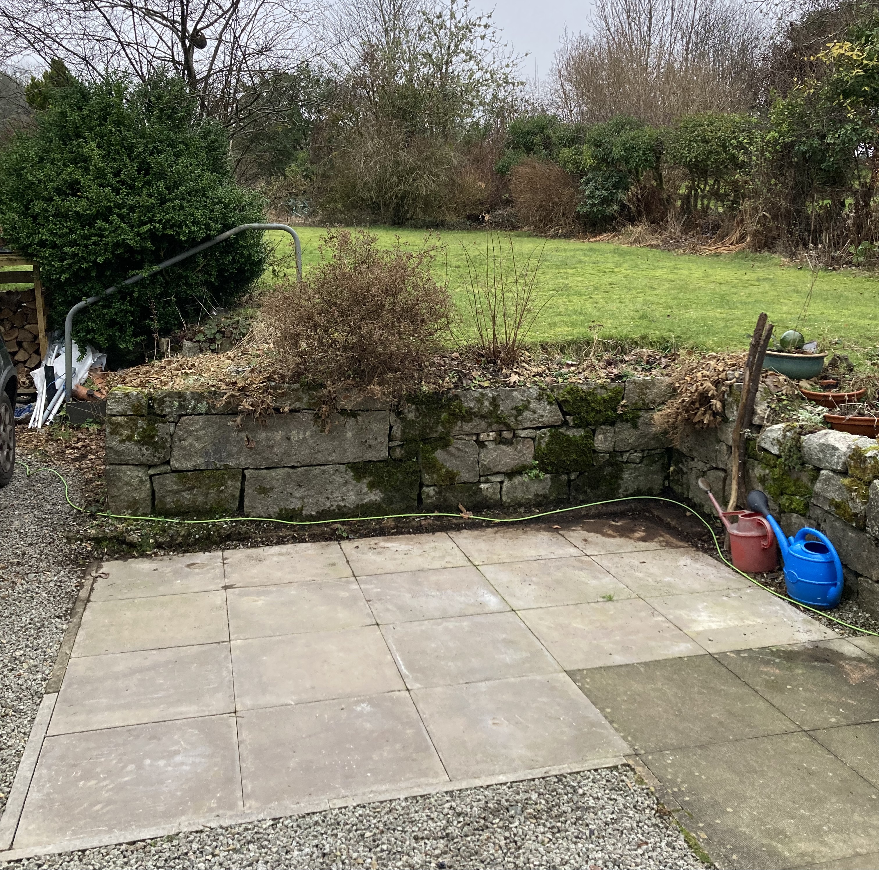 I was so excited by the prospect that this morning, after my regular stint washing the main floor of the town hall (doubtless to be the subject of another ‘joy of service’ entry), that I set to and re-organised the new patio space which had been cluttered with wooden benches and side tables. We’d had to clear these bits of furniture away from the site where the heat pumps now live, and we’d never put them back. And then I swept the place so that it would be open and ready to accommodate our dreaming.